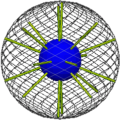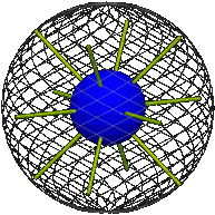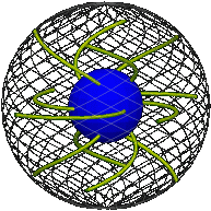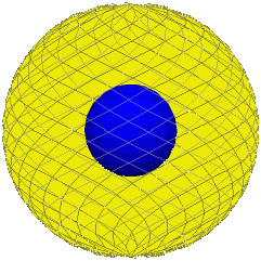 Thus we have a solid consisting of a hollow rigid sphere and a smaller rigid sphere within and concentric to it, and the volume in between. Call the enclosing sphere the rim and the smaller sphere the core. Respectively these represent the initial and final positions of the moving sphere, and the entire solid (which is stationary) represents the motion of the sphere.