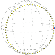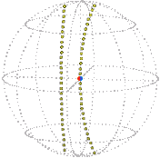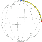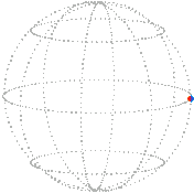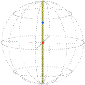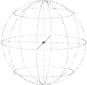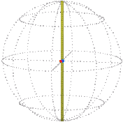 It isn’t obvious that any position can be reached from the reference position by just one rotation, that is, directly turned about one axis with no wobbling. We won’t prove it hear but in fact, given any two positions of the sphere there always exists a rotation, about a certain axis through a certain angle, that will take the sphere from the one position to the other. Furthermore, the angle can be required to be between 0 and 180° inclusive. This rotation is unique if the angle is not 0 or 180°, that is, if it is strictly within the range 0 to 180°.