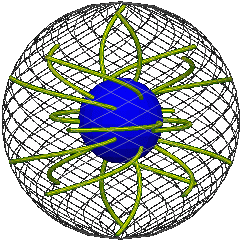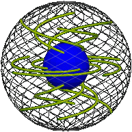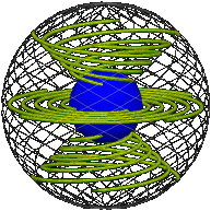 Then finding the elastic is just a problem in analytic geometry. For each time  s  we have a path in position space  p (t).  Convert each point on the path given by  t  to an axis and angle, then use the rotation formula in footnote 6 above to find the coordinates of any point on the intersphere t of the way in from the rim.  Thus for any  s,  we know the position of the entire elastic  t = 0 to 1.